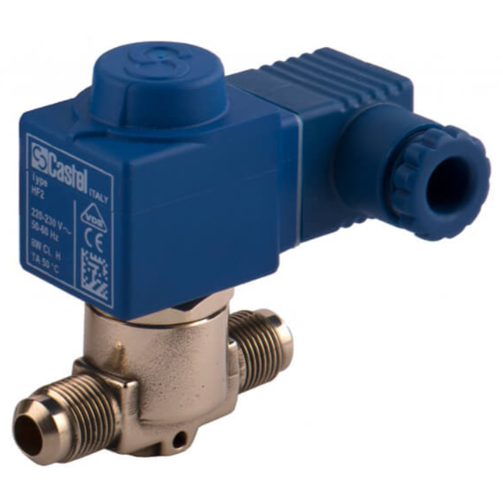 شیر برقی مهرهای ½ اینچ (بدنه کوچک) برند Castel یکی از تجهیزات کلیدی در سیستمهای تبرید، سردخانه و تهویه مطبوع است، که برای کنترل دقیق جریان مبرد در مدارهای تبریدی با فضای نصب محدود طراحی شده است. این مدل با عملکرد «Normally Closed» (بهصورت پیشفرض بسته) مناسب انواع سیستمهای تبریدی با فشار کاری متوسط است.