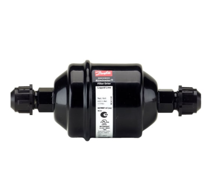 فیلتر درایر خط مایع Danfoss DCL 163 از سری «Eliminator® Liquid-Line Filter Driers» برند دانفوس، یک قطعه کلیدی برای محافظت از سیستمهای تبرید و تهویه مطبوع است. این مدل با اتصال ۳⁄۸ اینچ (۳/۸″ SAE فلِر یا مهرهای) طراحی شده و مناسب برای مدارهای تبریدی با مبردهای مختلف و شرایط کاری سخت میباشد.