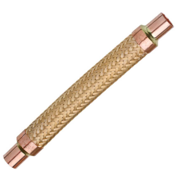 جنس لوله موجدار از مس قرمز (Red Brass)، بافت محافظ از برنز (Bronze braid) و انتهای اتصال مسی برای لحیمکاری (sweat) مستقیم.