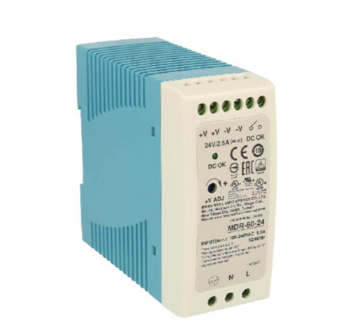 منبع تغذیه پاوران (Poweran) مدل MDR-60-12 با خروجی ۱۲ ولت DC و جریان ۵ آمپر طراحی شده برای تأمین برق تجهیزات حساس صنعتی و الکترونیکی. این منبع با طراحی مناسب برای نصب روی ریل DIN و قابلیت کار تحت شرایط محیطی صنعتی، یکی از گزینه‌های پرکاربرد در تابلو برق و سیستم‌های کنترل به شمار می‌رود.